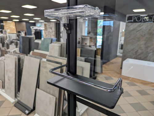 Akcesoria z firmy Sanswiss składają się z dodatkowego profilu nośnego (długość 1000 mm), 2 półeczek , 1 mydelniczki i akcesoriów modułowych. Dostępne są w 3 wykończeniach: połysk, biały mat, czarny mat.